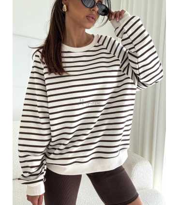 BC566 Bluza Oversize Bocca Ecru + Brązowe Paski