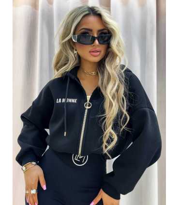 LM142 Dresowa Bluza La Monne Bella na Zamek Czarna