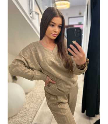 NB683 Komplet Dresowy Masełkowy Wytłaczany Mocca
