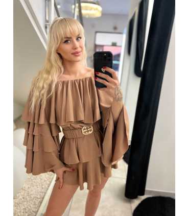 - 👗 Efektowna forma z podwójną falbaną i odkrytymi ramionami (hiszpanka)