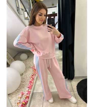 NB201 Komplet Dresowy Damski Masełkowy Szeroka Nogawka Paski Różowy
