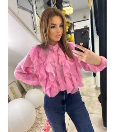 NB219 Elegancka Koszula Damska z falbanami Różowa