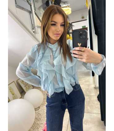 NB219 Elegancka Koszula z falbanami Niebieska