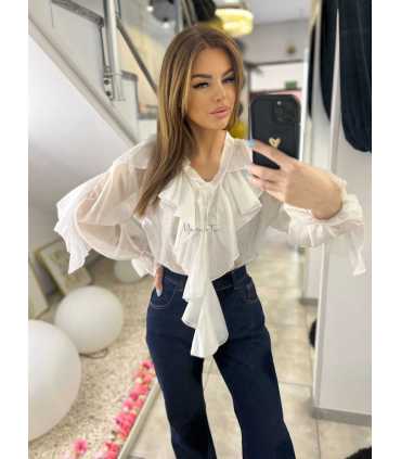 Elegancka koszula z falbankami wykonana z cienkiego tencelu, bardzo miękkiego , trwałego i delikatnego materiału.