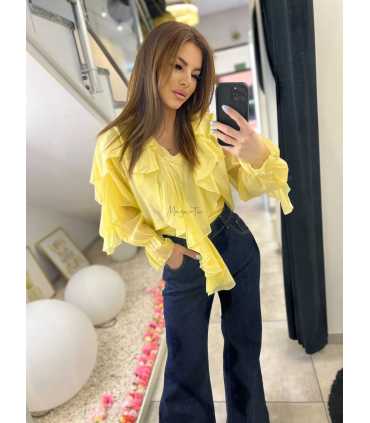 Elegancka koszula z falbankami wykonana z cienkiego tencelu, bardzo miękkiego , trwałego i delikatnego materiału.