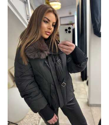 Pikowana kurtka zimowa z gęstym, odpinanym futrzanym kołnierzem