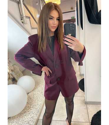 Taliowana marynarka wykonana z eleganckiego materiału. Fason dłuższy, zapinana na dwa guziki , model z poduszkami na ramionach, posiada atłasową podszewkę.
