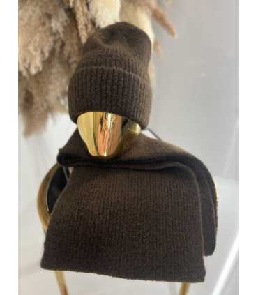 C041 Komplet Czapka + Szaliki Akryl Moher Czekoladowy