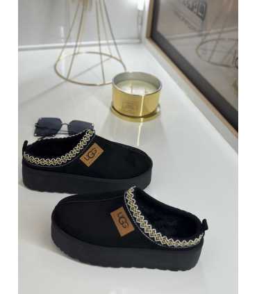 L725 Wsuwane Śniegowce Damskie Clogs Ocieplane Kożuszkiem Czarne