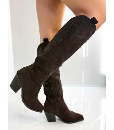 Czekoladowe kozaki kowbojki wysadzane cyrkoniami