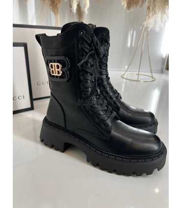 Klasyczne botki / workery wykonane z wysokogatunkowej miękkiej skóry ekologicznej, licowej, zapinane z boku na zamek. Zdobione czarno-złotą, metalową klamrą BB.