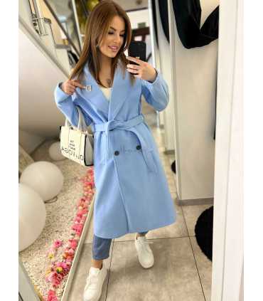 NB213 Elegancki Płaszcz Wiosenny z paskiem i Broszką Niebieski