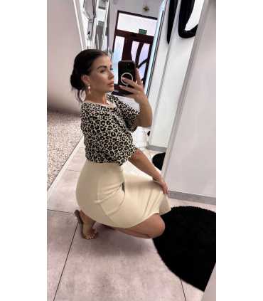 Spódnica z gumką w pasie , z fantazyjnym wycięciem z jednej strony.