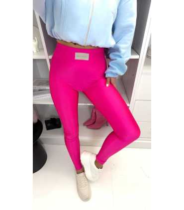 ML401 Legginsy Modelujące Damskie Millagro Naszywka z Logo Neon Róż