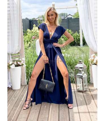 Przepiękna sukienka wykonana z lejącego się materiału, idealna na letnie upały. Posiada w pasie wszytą gumkę, dzięki czemu idealnie dopasowuje się do kobiecej sylwetki. Sukienka w wersji w maxi, z rozcięciami na całości spódnicy, i jej największą zaletą jest możliwości wiązania na wiele różnych sposobów.