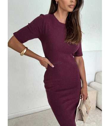 Dopasowana sukienka Midi z dzianiny w prążek, z krótkim rękawem, obcisła, podkreślająca kobiece kształty.