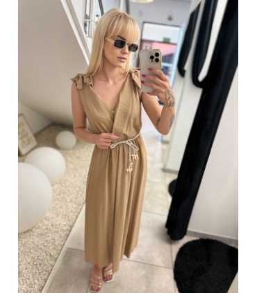 NB581 Sukienka z Wiskozy Kokardki Jasny Camel