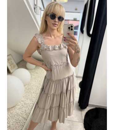 Letnia, zwiewna, cienka sukienka na ramiączkach, wykonana z wiskozy. Sukienka posiada elastyczne ramiączka a także plaqcy z wszytą gumką , dzięki czemu można z niej zrobić Hiszpankę, zapewniając idealne dopasowanie do Twojej sylwetki. Wykonana z przewiewnego materiału stworzonego na lato. Wkładana przez głowę.
