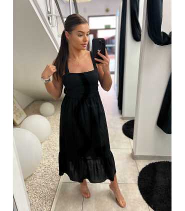 NB597 Sukienka z Bawełny Wiązana z Tyłu Czarna