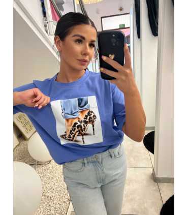 Oversizowy t-shirt z krótkim rękawkiem, z dekoltem pod szyję.